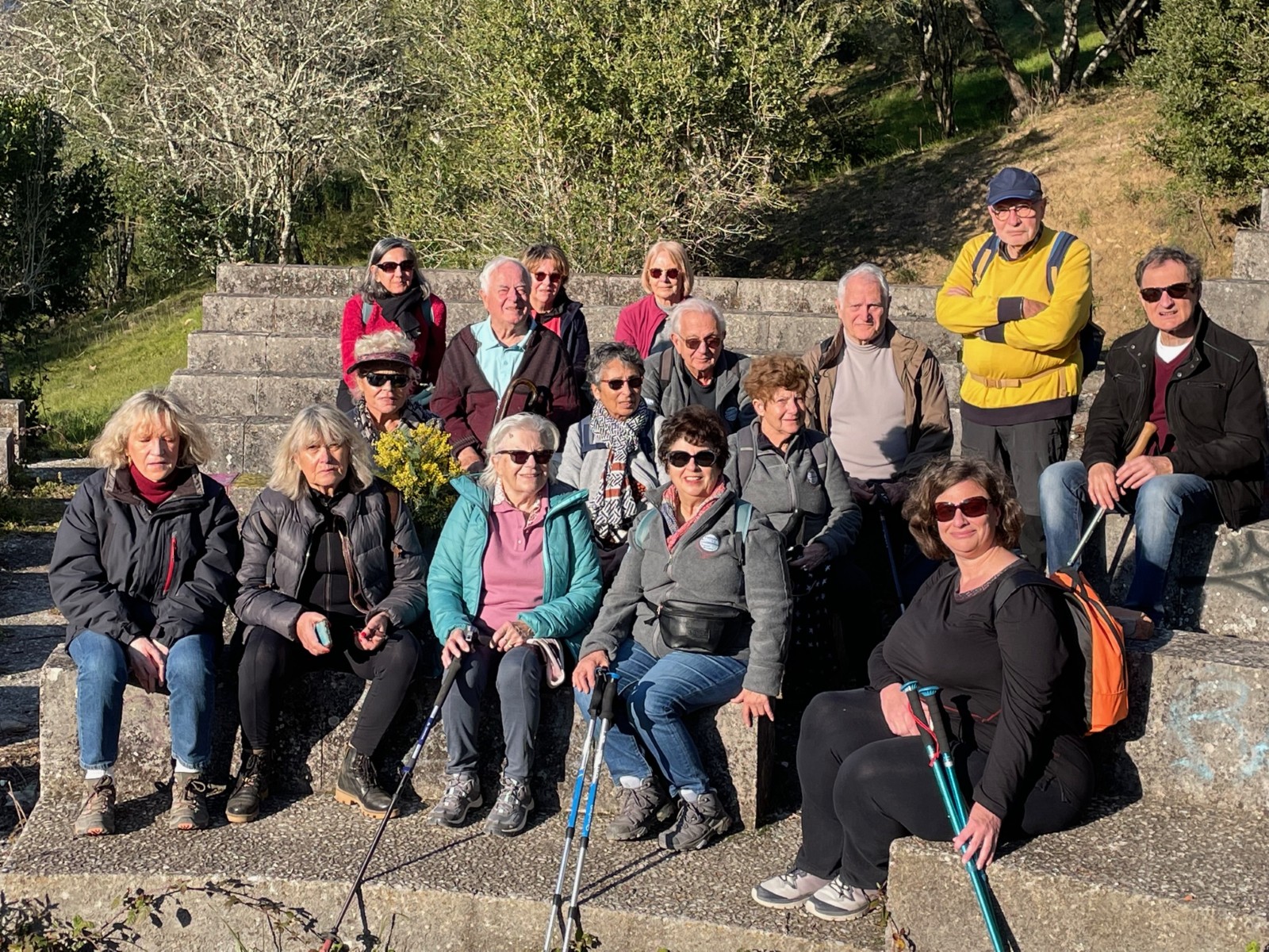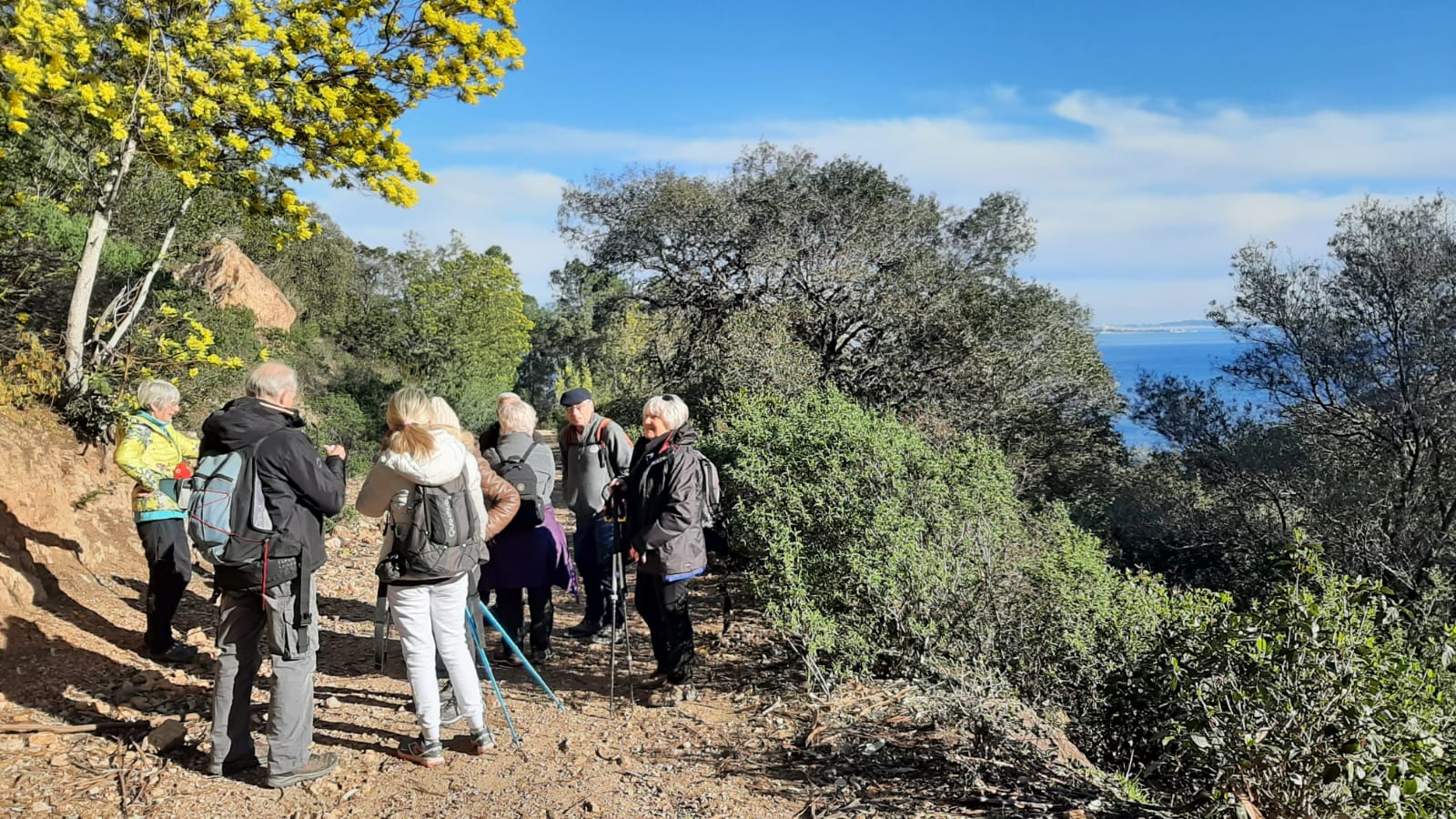 Nous sommes venus à 25 participants ce jeudi 2 février 2023, ambiance presque printanière et ciel bleu turquoise, satisfaire à une addiction dont nous étions privés depuis deux ans au moins, j’entends par là le bonheur de s’enivrer des mimosas de l’Estérel et du Tanneron, noyés au milieu de ses effluves capiteux.