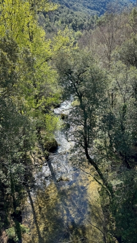 Nous ne sommes pas allés jusqu’au pied du barrage, retardés par le spectacle de la végétation printanière et surtout par cette famille de bovidés composée du bouc, de la chèvre et de 2 chevreaux qui se régalaient des tendres feuillages.
