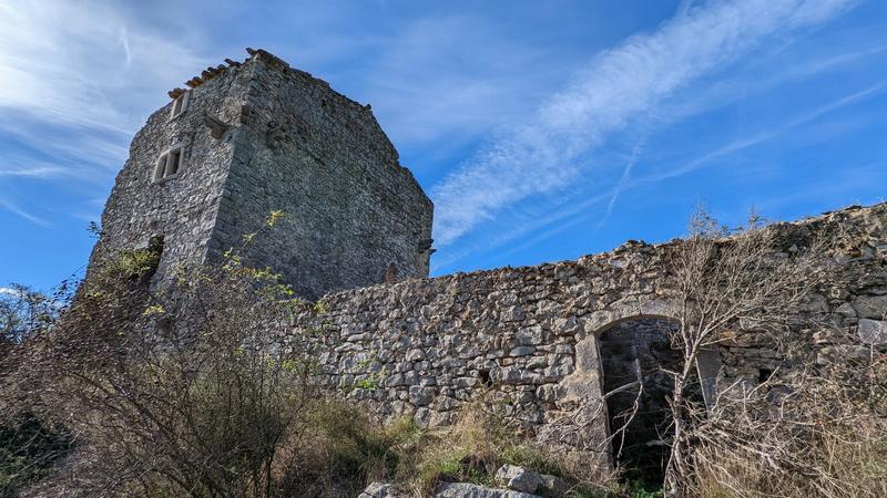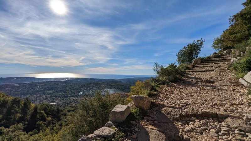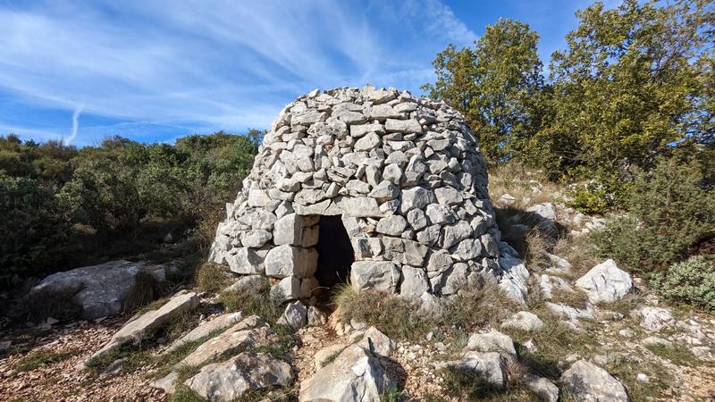 Nous avons découvert au milieu d’un panorama exceptionnel, une très jolie borie parfaitement conservée, un peu plus loin les ruines d’un château du XIIIème siècle, puis une sympathique chapelle au pied du Baou et enfin le pittoresque village de St Jeannet.