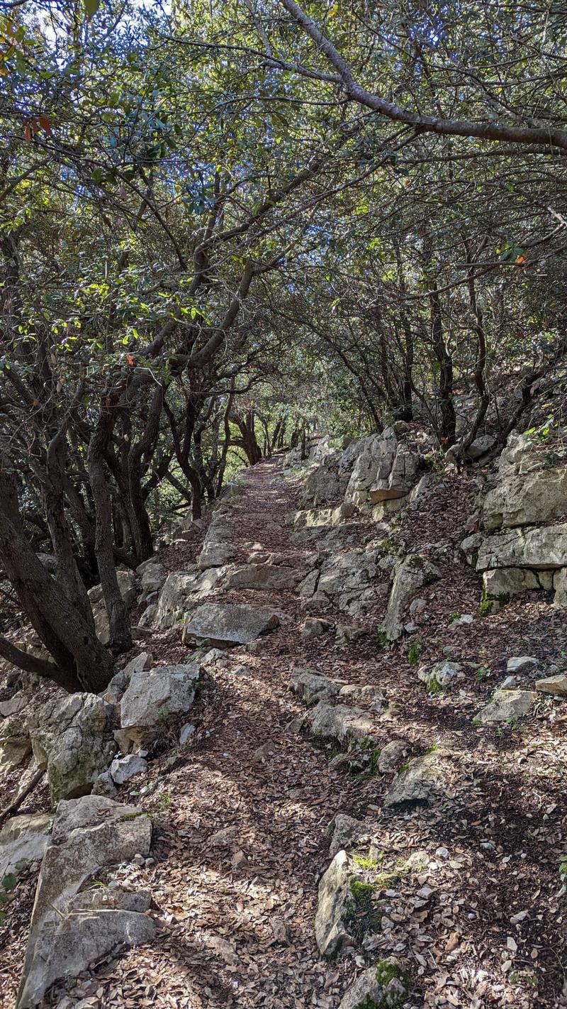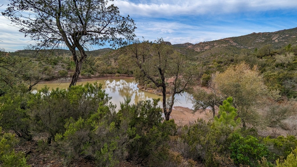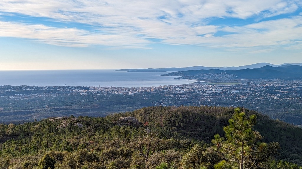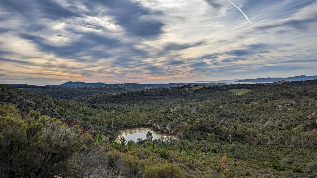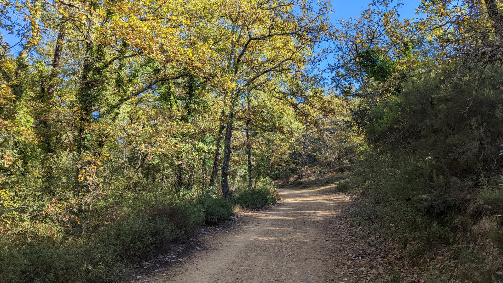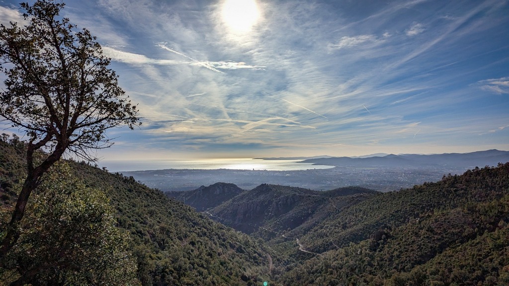 Une matinée ensoleillée pour couvrir 7 kilomètres d’une large avenue forestière. Après une bonne descente au cœur des bois mystérieux de chêne lièges nous avons fermé la boucle en remontant depuis le creux du vallon. La vue lointaine du barrage de Malpasset nous a rappelé la catastrophe du 2 décembre 1959.